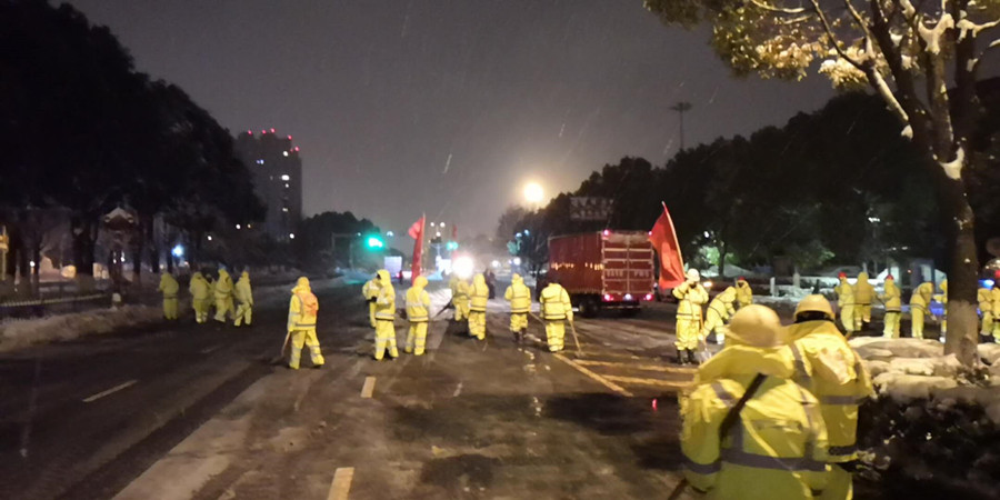 晚8时,嘉盛建设集团有限公司、同力建设集团、第二道路排水工程有限公司、久大路桥、雨发建设集团、金固建设集团、建工集团、中建八局三公司、中建三局、中铁四局等建筑业企业组成的十支扫雪突击队,共计1400余人,100台机械设备按指令在江东路、乐山路、梦都大街、江山大街、扬子江大道等重点路段集结,全面投入扫雪除冰工作。同时,委分管领导一线指挥,带领委质安处、市政监督站、安监站主要负责人及我站管理人员30余人赴各包干责任路段现场督战,截至26日上午7时,共清理道路40公里,清除积雪近200万平方米,有力地保障了道路通行顺畅。