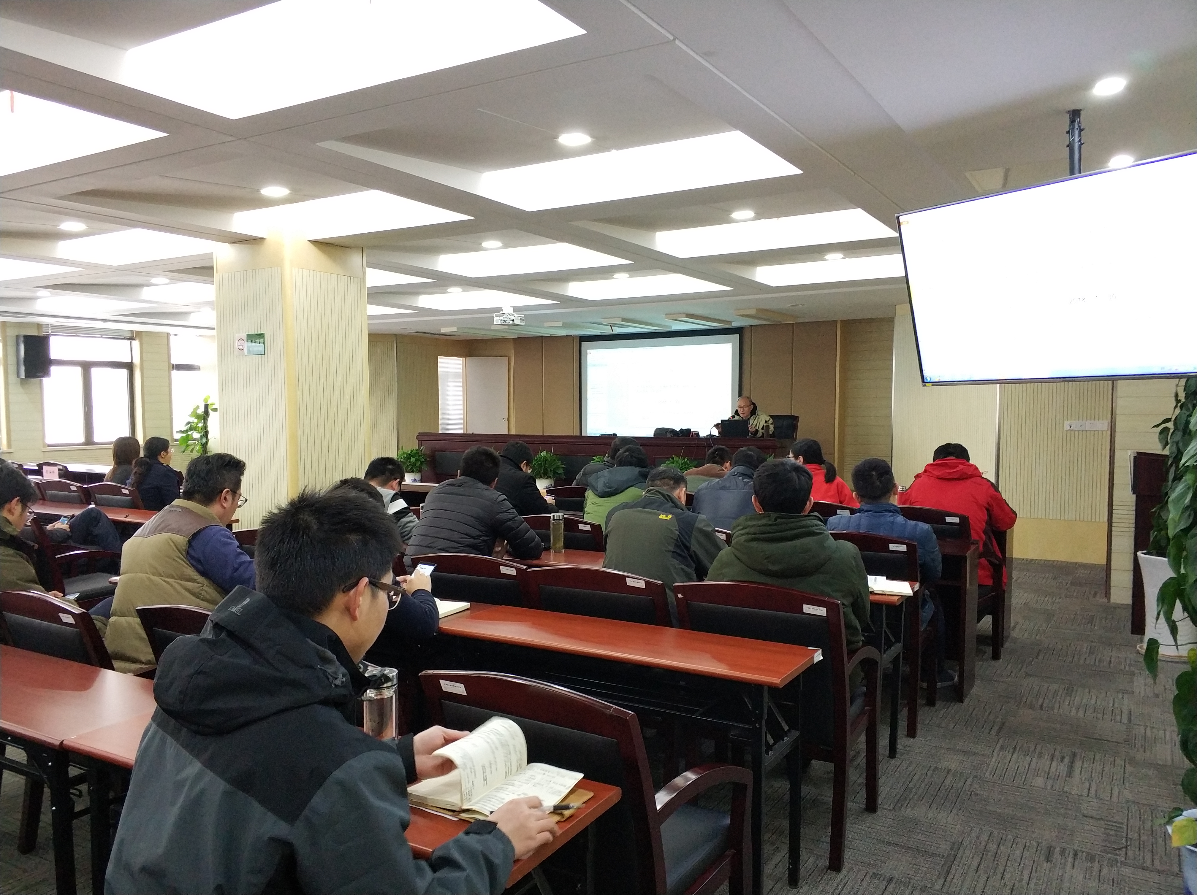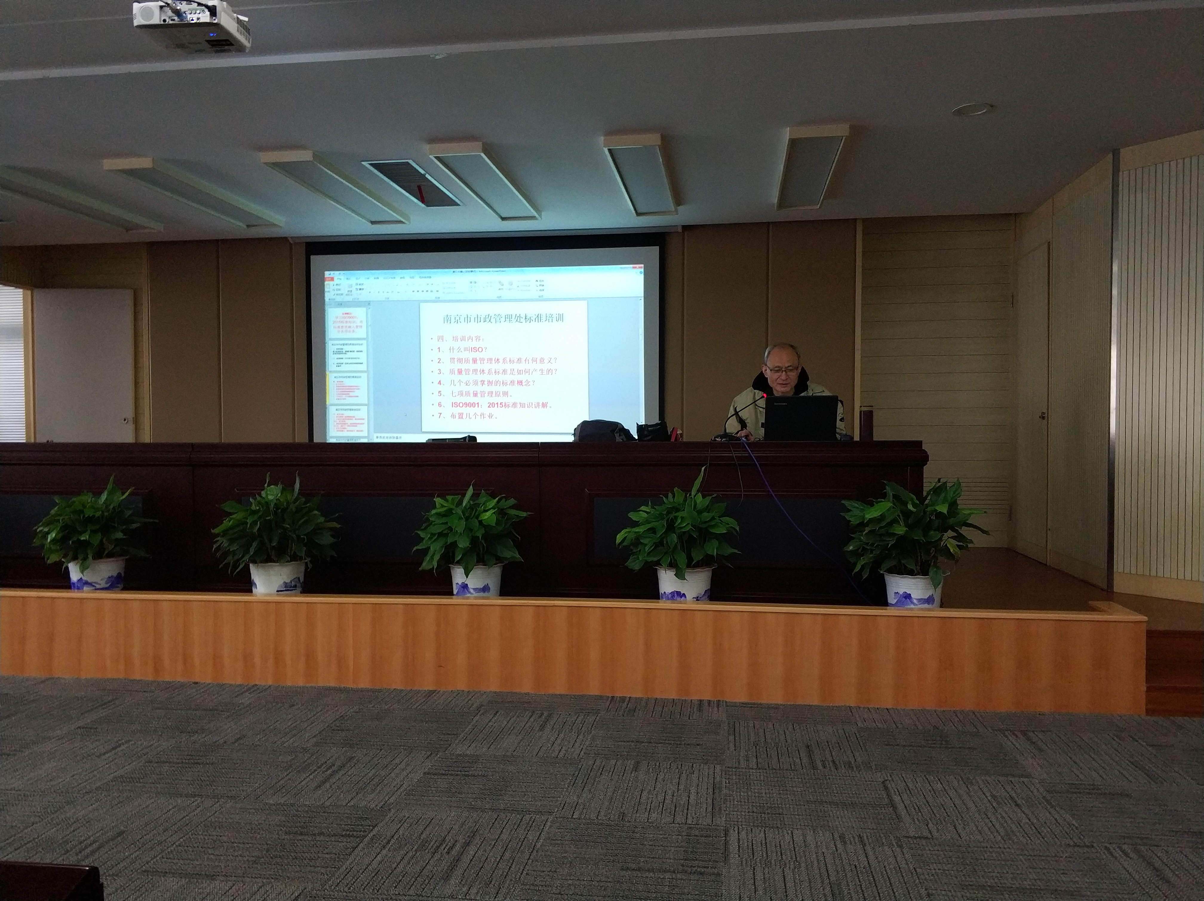 蒋国平老师首先介绍了ISO9001标准换版的背景以及相关的术语、定义;其次,讲解了ISO9001:2015与ISO9001:2008这两个版本的变化,质量管理手册修订的具体要求;第三,结合我处工作,对ISO9001标准条款进行了详细解读,指明了贯彻质量标准体系的意义;最后,结合我处(站)实际,具体说明了处(站)内外环境、有利因素和不利因素、相关方及其要求、存在的风险等问题。