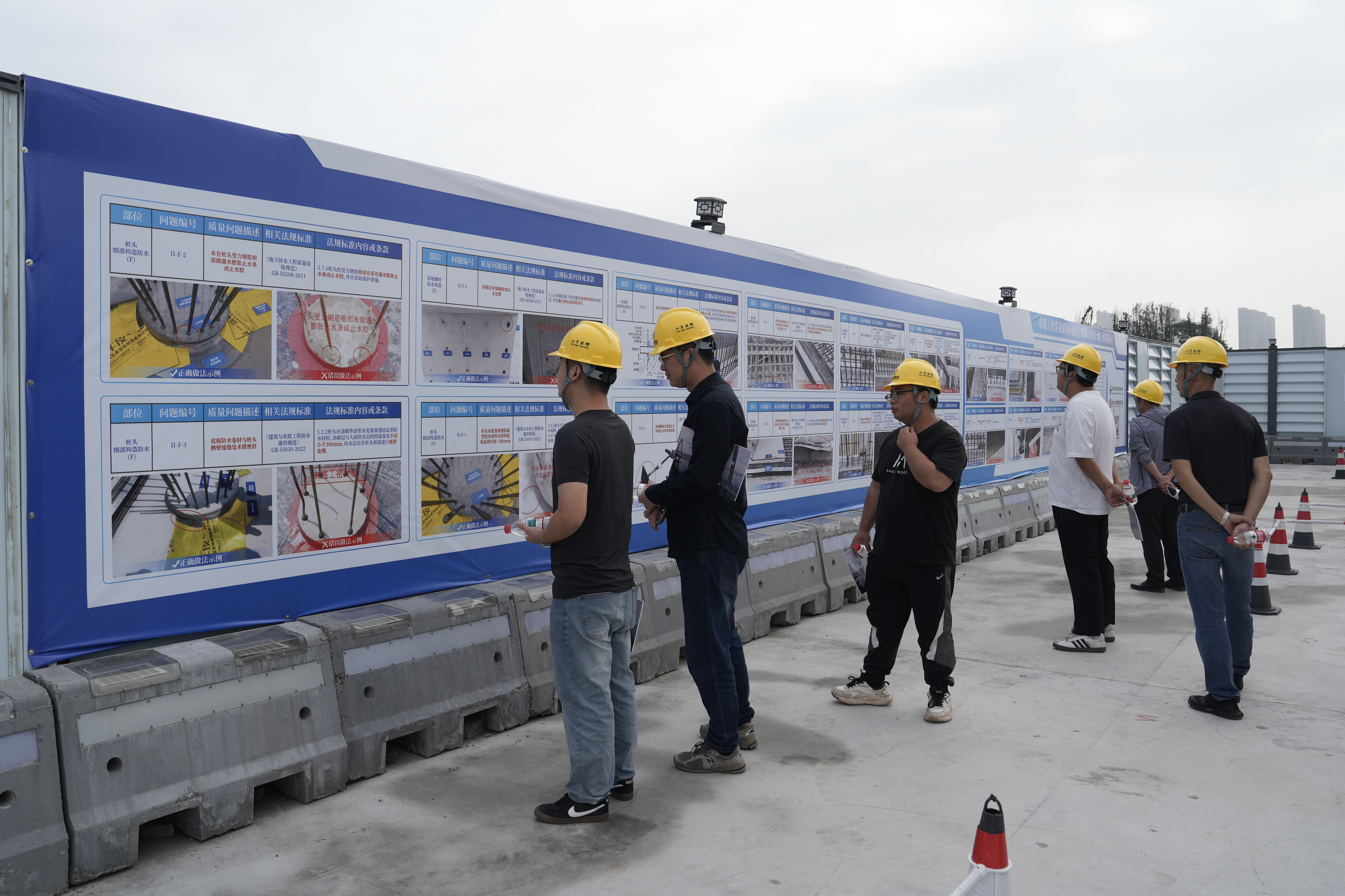 观摩活动现场设置了人行道、沥青路面、排水管道、地下结构、模板支架、预应力箱梁、桥梁支座等市政工程实体样板,并结合常见的不规范施工工艺和实体质量通病,在样板上设置质量问题点供观摩人员识别。现场同步设置展板,图文并茂的展示了实体样板上存在的质量问题以及对应的规范标准、正确做法,供观摩人员学习参考。活动现场气氛热烈,各位观摩人员踊跃参与质量问题识别,并就相关的标准做法、优秀工艺进行了探讨。