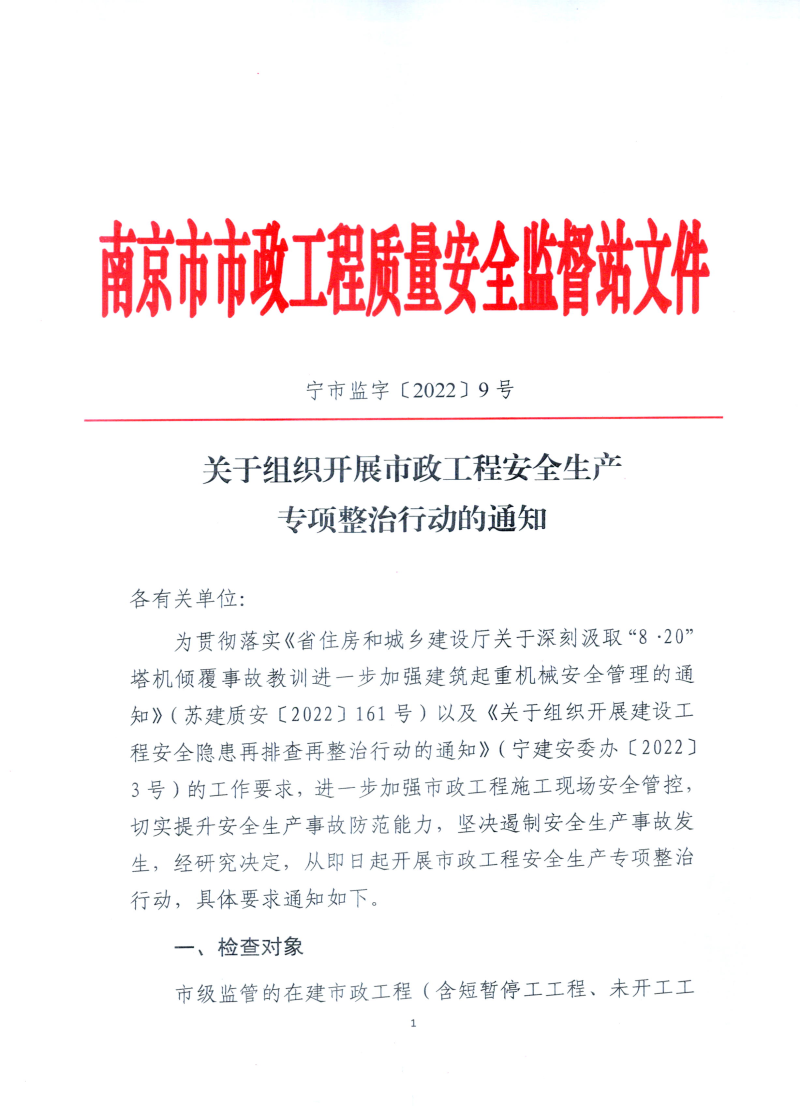 关于组织开展市政工程安全生产专项整治行动的通知(宁市监字〔2022〕9号)