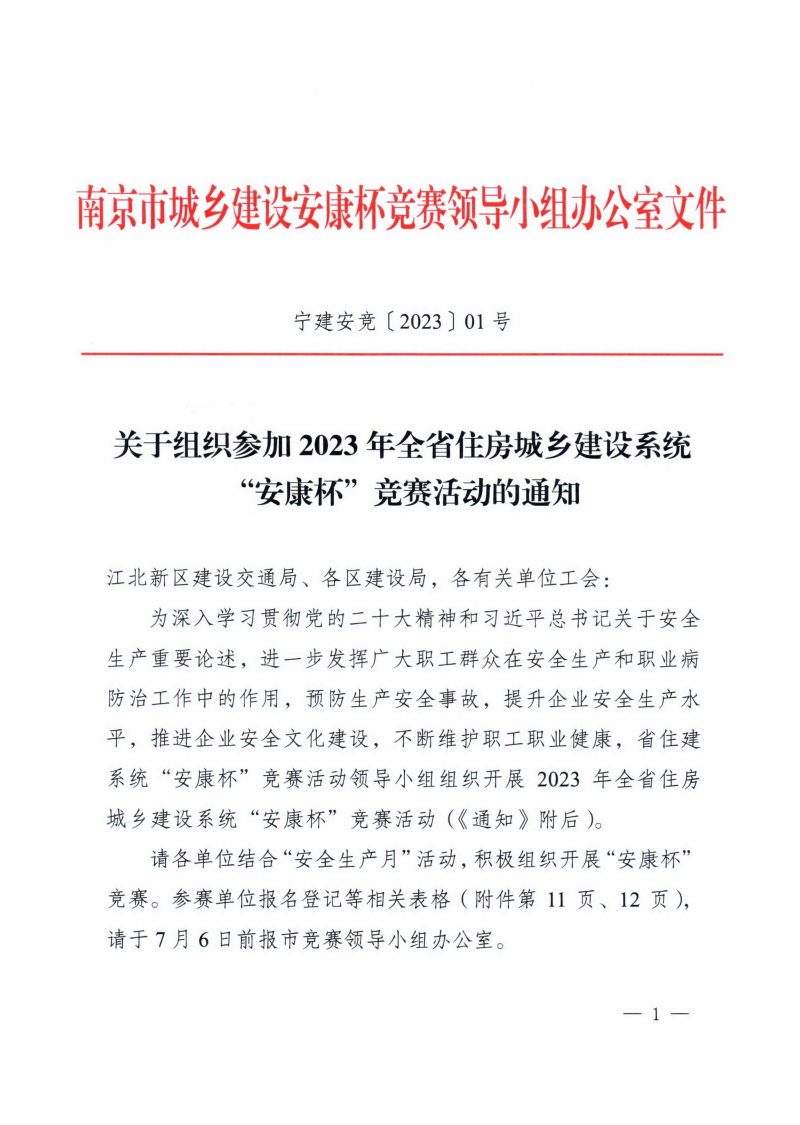转发市建委《关于组织参加2023年全省住房城乡建设系统“安康杯”竞赛活动的通知》宁建安竞[2023]01号