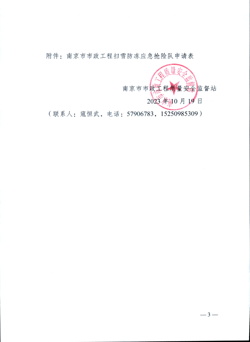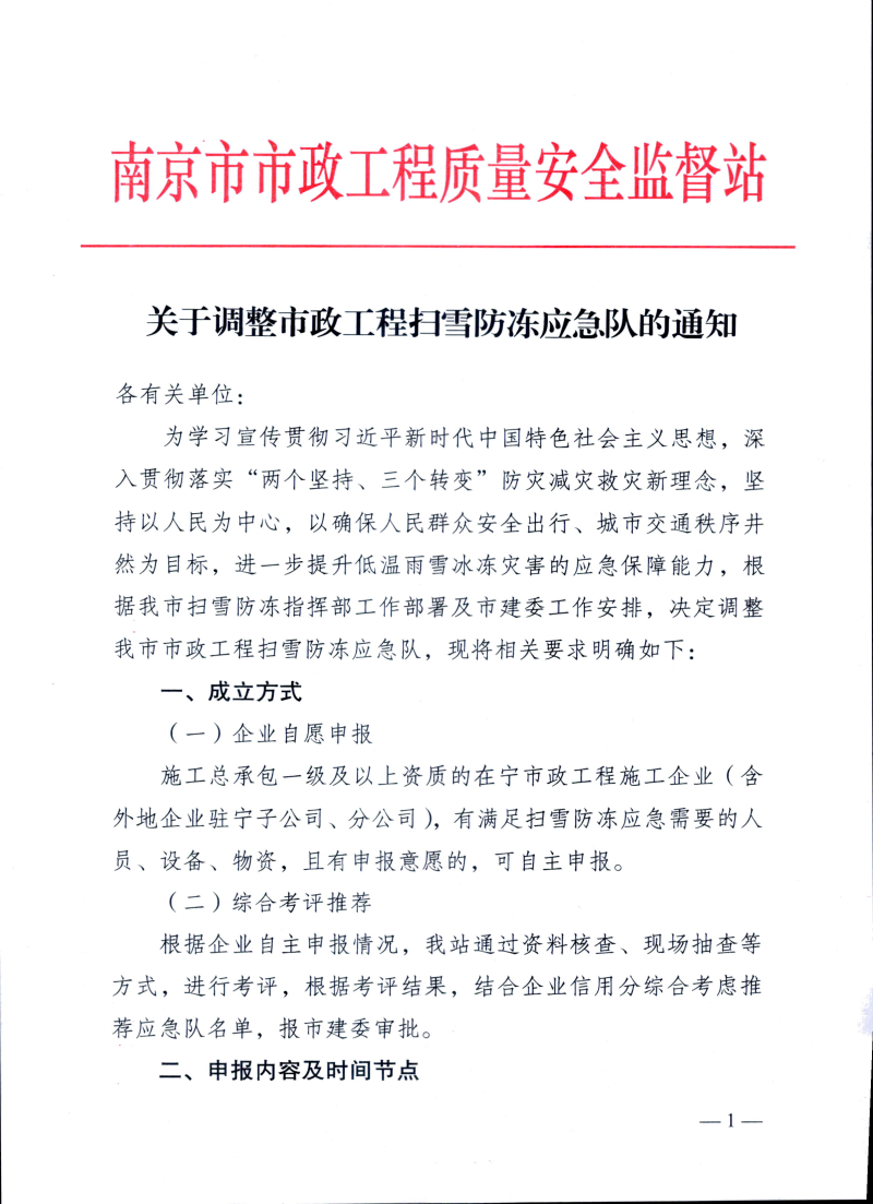 关于调整市政工程扫雪防冻应急队的通知